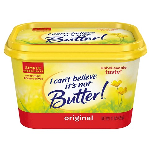 Calories in I Cant Believe Its Not Butter based on the calories fat protein carbs and other nutrition information submitted for I Cant Believe Its Not Butter. I Cant Believe Its Not Butter is a good example of a food that is doing nothing beneficial for us and may in fact harm us because of the saturated fats sodium and calories that are packed into one small very small package. 2000 calories a day is used for general nutrition advice.