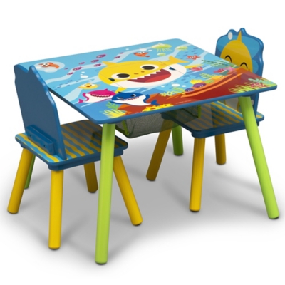 Baby shark table and chairs. Youve heard the Baby Shark Song. Colorful sets can be used for playrooms while the contemporary designed. Baby Shark 4-Piece Playroom Solution by Delta Children Set Includes Table and 2 Chairs and 6-Bin Toy Organizer.