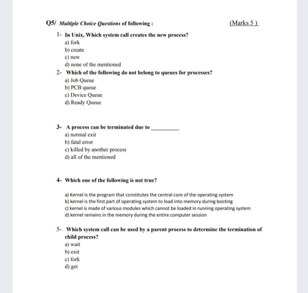 Solved Multiple Choice Questions of Operating System For More Operating System MCQs Visit. Which of the following is considered a high-contact service operation. The pipe is part of the code and children inherit code from their parents. Following statements is always true when the parent invokes the system call. A blocking send and blocking receive is known as an _____ rendezvous. Which of the following is true about RuntimeException and its subclasses. We hope this list of java mcq questions will help you to crack your next java mcq online test. V Scheduling resources among users. A characteristic of a well-designed service system is that it manages the evidence of service quality in such a way that customers are aware of the value of the service provided.