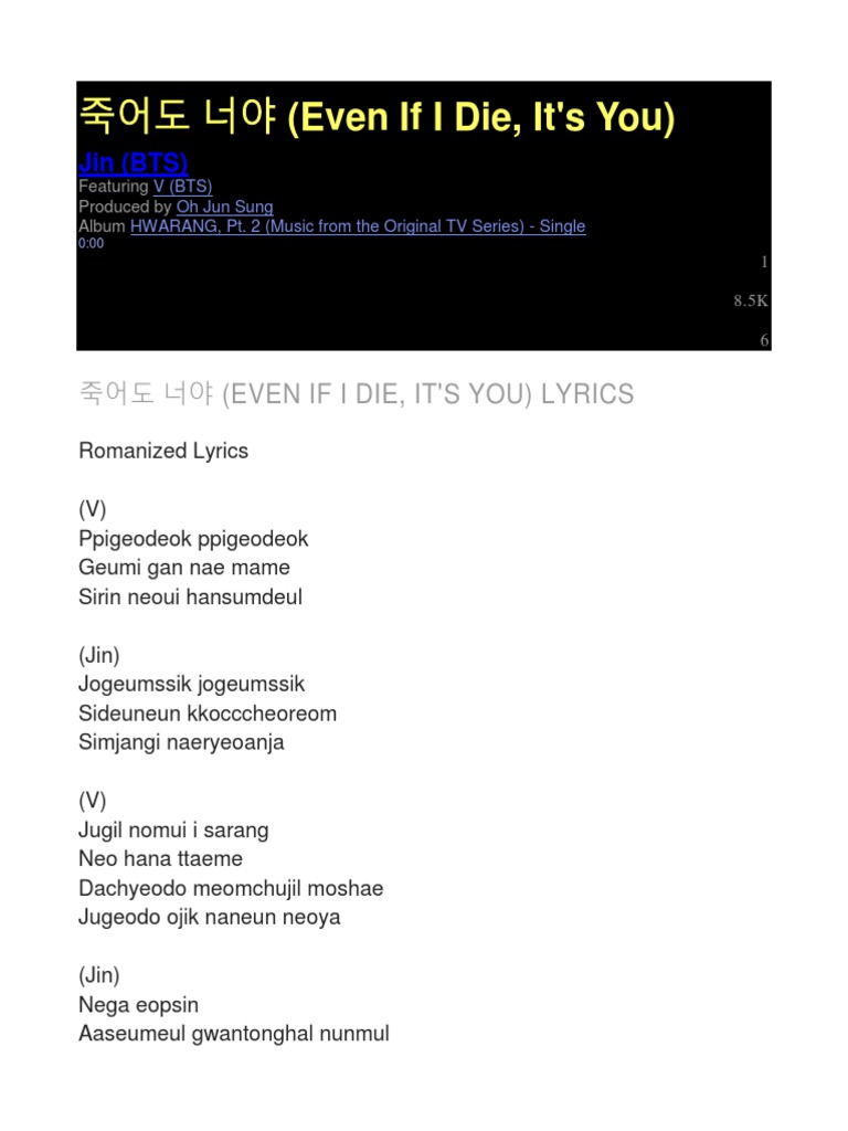 Once Again Even if I DieJugeodo Dasi Hanbeon. A story about Jeon Woo Seok a stuntman who dreamed. Video clip and lyrics BTS V Jin Even if I die its you 죽어도 너야 by BTS. Even if I die I will tell the truth. Buy from Artist. Ethiopians prepare for battle to save the nation John Sparks Africa correspondent in Addis Ababa Ethiopia. Jogeumssik jogeumssik sideuneun kkocccheoreom simjangi naeryeoanja.
